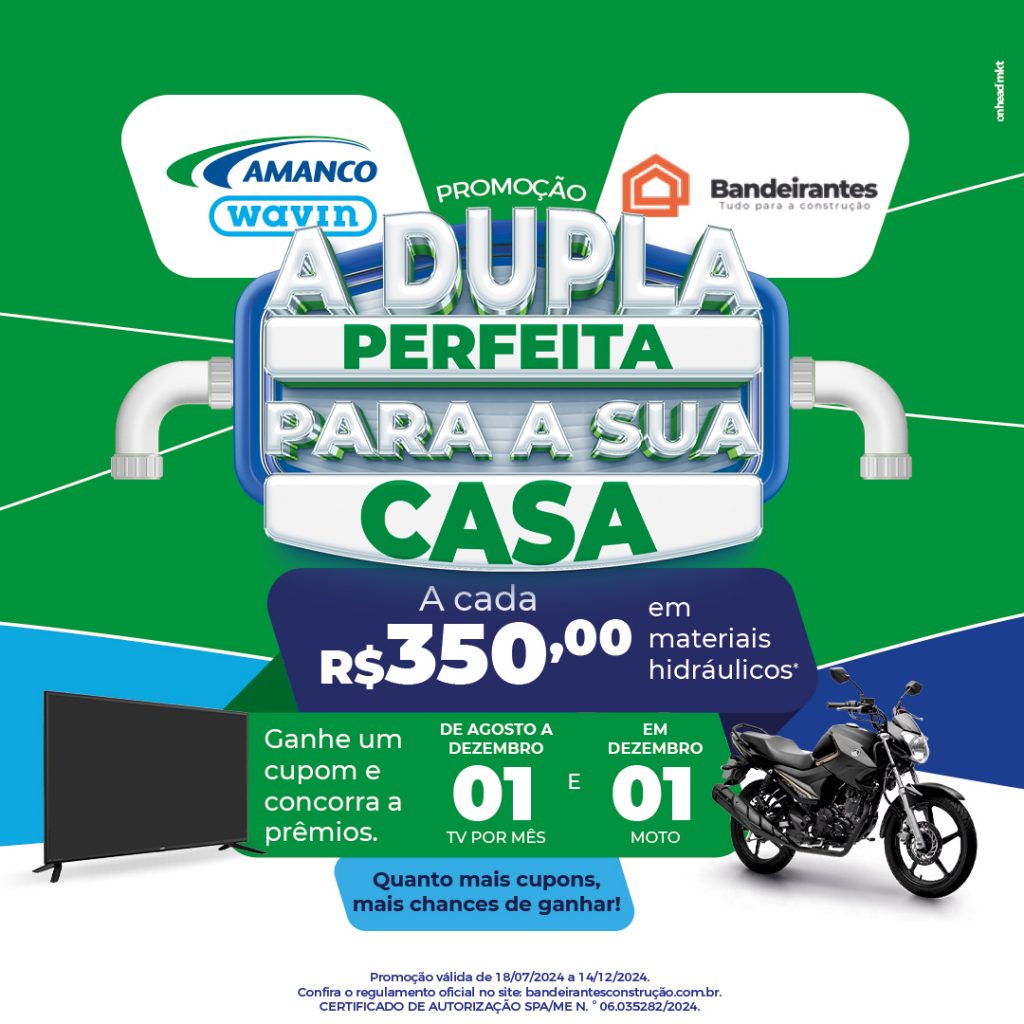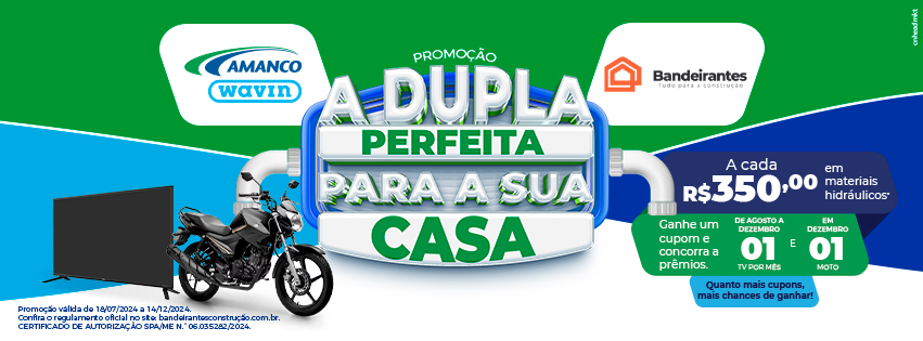 Visando impulsionar as vendas em parceria com a AMANCO, marca renomada de produtos hidráulicos, a BANDEIRANTES CONSTRUÇÃO contratou a AUTORIZA PROMOÇÕES para regulamentar e legalizar uma campanha promocional junto a SPA/MF (Secretaria de Prêmios e Apostas do Ministério da Fazenda) para realização de diversos sorteios de prêmios.