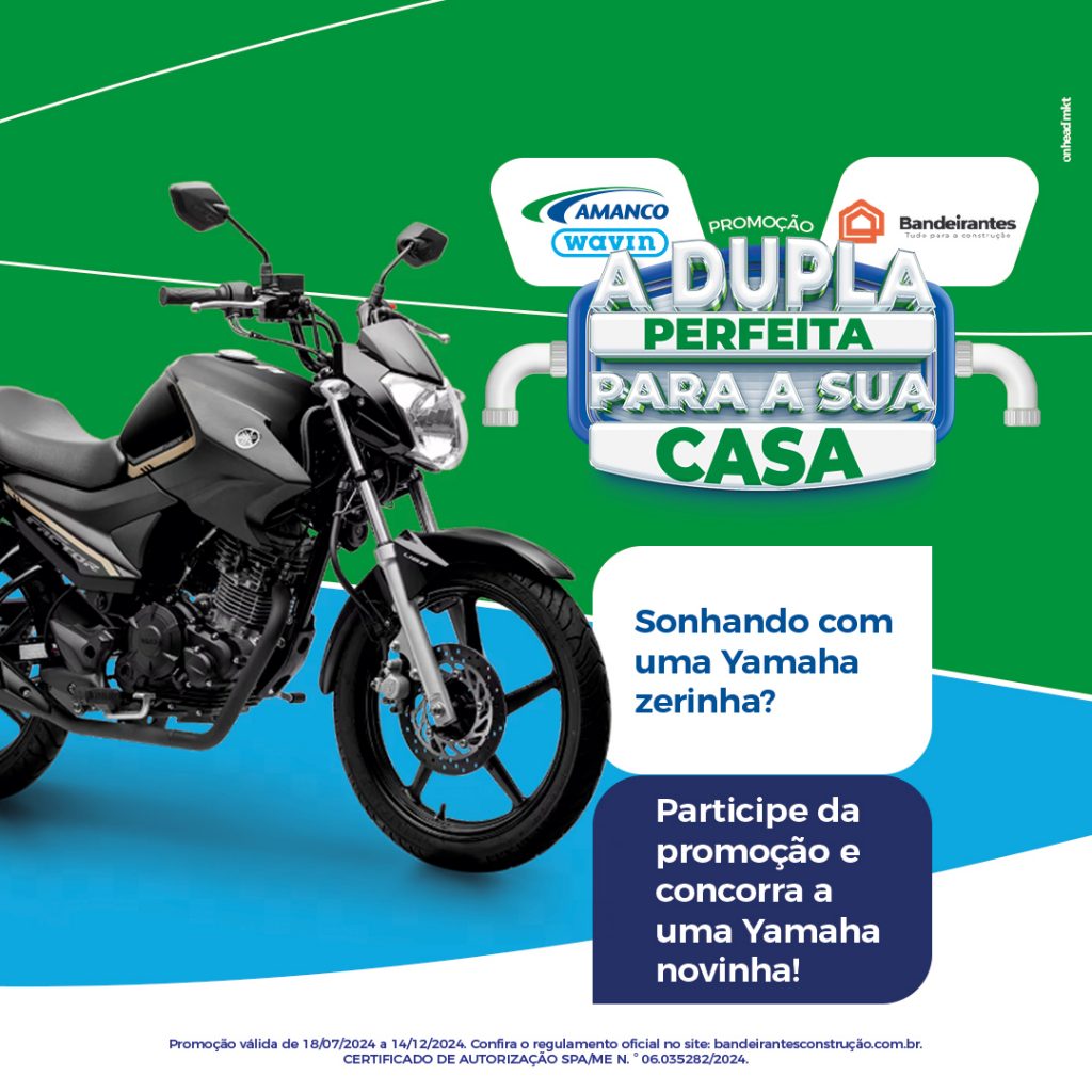 A promoção intitulada “A DUPLA PERFEITA PARA SUA CASA” foi realizada na modalidade ASSEMELHADA A CONCURSO e foram sorteadas diversas Smart´s TV 42” LED e a uma moto 0km Yamaha YBR150.