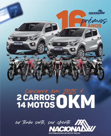 - Prêmios de Encher os Olhos: Estamos sorteando um total de 14 Motos Yamaha Nova Factor 0 Km e 02 Automóveis Fiat Mobi 0 Km. Imagine sua frota renovada com veículos zero quilômetro, trazendo mais agilidade e economia para o seu dia a dia!
