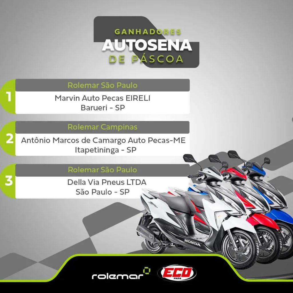 Para cada promoção foram sorteadas três Motocicletas Honda, modelo Elite 0Km, totalizando uma distribuição de prêmios de mais de R$140.000,00.